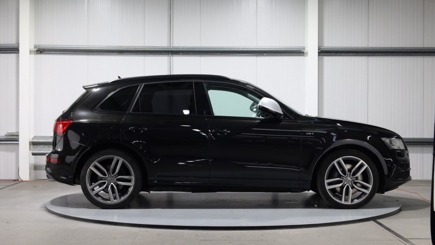 *** DEPOSIT TAKEN *** Stunning example of this Audi SQ5 finished in Audi exclusive crystal-effect panther black (purple fleck in sunlight) , Full Audi main dealer service history and will be serviced before sale, Registered August 2015 so is Euro 6 / ULEZ compliant, Very rare spec with almost every factory optional extra to include: Pan roof, Diamond quilted leather interior, Audi Exclusive Carbon interior trims, Black styling pack with black grille, window surrounds and black roof rails, Drive select driving modes, Keyless entry and start button, Heated seats, Electric seats with memory, Heated/cooled climate cupholder, Flat bottom steering wheel, Technology package, Sat nav, Reverse camera, Hill hold assist, Electric folding door mirrors, Electric tailgate, B&O surround sound, Lane assist, Side assist (Blind spot warning), Audi parking system advanced with front & rear parking sensors with rear camera, LCI Facelift model with newer LED lights, Chrome grille, 21" Alloy wheels, Pirelli P Zero tyres all round, Supplied with 2 Keys, HPI Clear